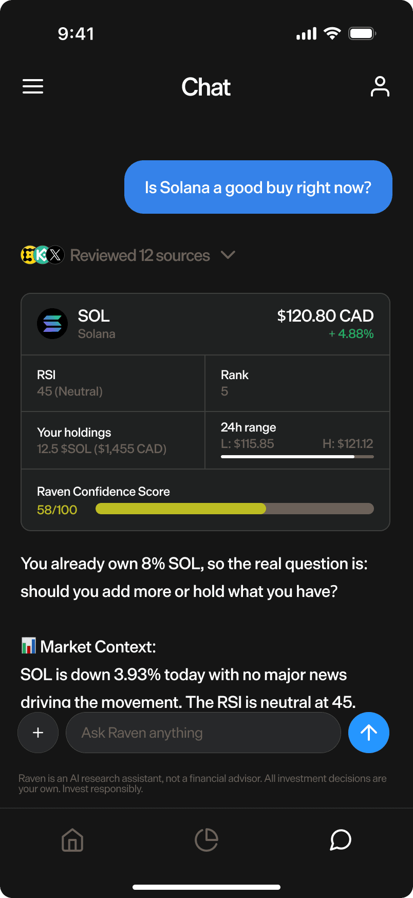 Participants trusted Raven's guidance enough to base real investment decisions on it. Showing the reasoning, displaying confidence levels, and citing sources creates transparency that turns skepticism into certainty.